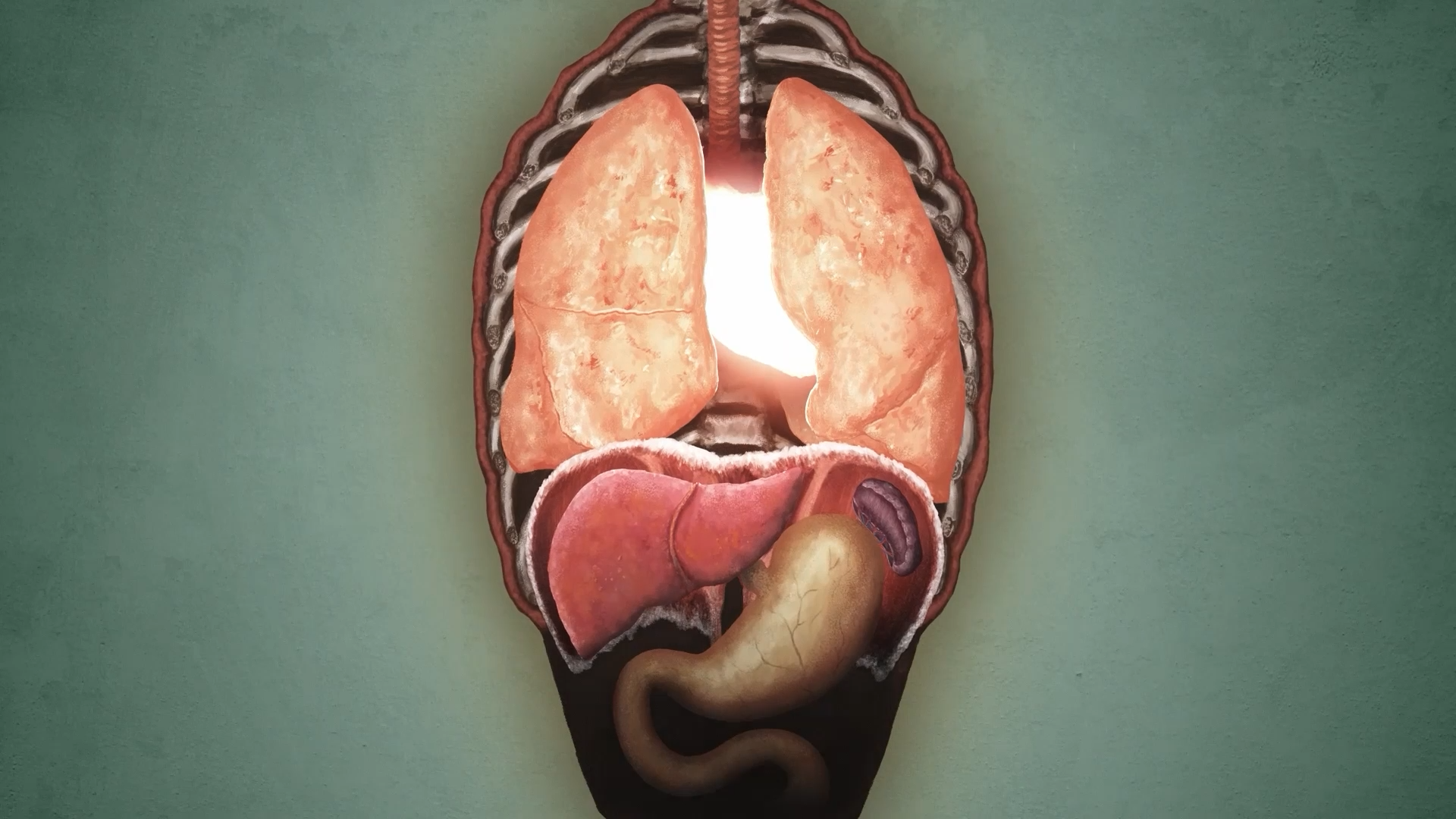 Alle Organe wurden von Hand in Photoshop gezeichnet und in After Effects animiert. So eine Animation könnte für Videos in denen die Anatomie erklärt wird Verwendung finden, aber auch für geführte Atemmeditationen oder Atemreisen.